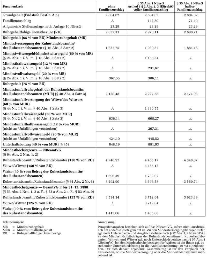 3. Die ab 1. 12. 2022 gültigen Mindestversorgungsbezüge und Mindesthöchstgrenzen ergeben sich aus der Anlage.